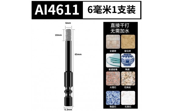 卡夫威尔AI4611干打瓷砖钻头(六角柄)6MM AI4612干打瓷砖钻头(六角柄)8MM