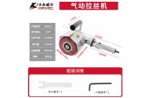 卡夫威尔气动拉丝机AS5171:主体铝合金材质,本色;产品裸机尺寸:37*19.5*19cm,产品明细:拉丝机1台,1/4"进气接头*1个、19mm开口扳手*1,内六角扳手1个;手柄*1护罩材质不锈钢;手柄弯头及螺帽材质Q235;拉丝轮尺寸100*120mm;按压式开关;进气管径3/8“;空载转速2500rpm;工作气压0.63Mpa;耗气量3.5Scfm;主轴螺牙5/8”-11;净重3097g。