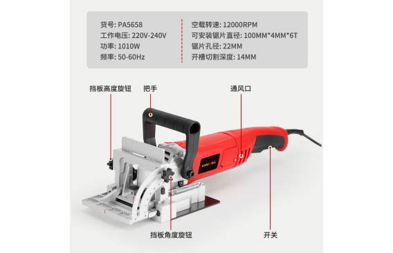 卡夫威尔工业级木工精密开槽机PA5657、PA5658 多角度定位,深浅可调,轻松操作的电动开槽机