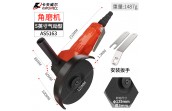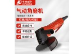 卡夫威尔气动角磨机 5"板机式气动角磨机,机身总长190mm,高100mm,机头宽50mm,手柄外径42mm,防护罩外径134mm,厚1.5mm;橙黑色铝机身;性能参数:自由转速11000rpm,工作气压6-8kg/m²,1/4"进气口;主轴螺纹M10;配件:砂轮片1片,铁扳手一对,一个辅助手柄。