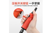 卡夫威尔气动刻磨机套装AS5164:压板式开关,裸机尺寸15.5*5*3.4cm;橙黑色铝机身;配件:双拆卸扳手一对,3mm/6mm夹头各一个,45#碳钢材质,表面发黑处理,3mm柄磨头/6mm柄磨头各5支,磨头柄材质45#碳钢,表面镀镍;性能参数:空载转速22000rpm,工作气压90PSI,1/4"进气口;单套净重870g。