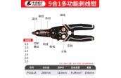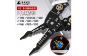 卡夫威尔剥线钳:9合1,带剥线、断线、分线、压线、夹持、拧卸螺丝、削线、绕线、剪线功能;总长205mm,宽55mm;净重190g;钳体长115mm,单面厚3MM,材质65Mn,整体热处理,硬度50±3HRC