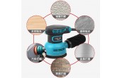 卡夫威尔圆型砂光机:5”,尺寸23.7*12.5*145cm;蓝果配色,黑色全新TPE料,蓝色全新尼龙料;电压220V功率300W空载转速5000-12000r/min,粘盘直径125mm(8孔),6档速度调节,带集尘袋,内置开关带防尘胶套,电源线符合3C认证,线材外露180mm,插头符合3C认证扁插,符合UL、CE标准;重量:1280g。