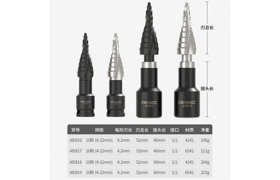 卡夫威尔工业涂层阶梯钻系列 4-32mm第五代双螺旋排屑槽多功能阶梯钻系列耐磨强度钻头