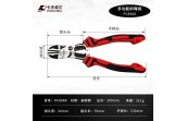 多功能钢丝钳:钳体55#高碳钢,表面发黑精抛,钳体硬度40-42HRC,刃口硬度48-50HRC,红黑双色TPR套柄;尺寸:总长223mm,钳头长91mm,钳头宽29mm,手柄长130mm;净重:378g;