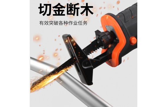 PA4510H:橙黑配色,黑色全新TPE料,橙色全新尼龙料;工作电压20V,空载速度:0-3000spm,行程25.4mm,最大切割厚度:木材175毫米,金属12毫米;带快速换刀夹头,2档刀片摆动可调,带LED灯,安全保护按钮,无极调速开关,电机符合GS,CE,EMC标准 ;单个裸机搭配一根金属锯条、一根木工锯条、一份中英文说明书