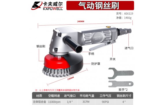 卡夫威尔气动钢丝刷AS6119 除锈 去焊渣 去杂质 去毛边毛刺 金属抛光 防止火花飞溅 稳定运行 操作简单 结实耐用气动钢丝刷机器