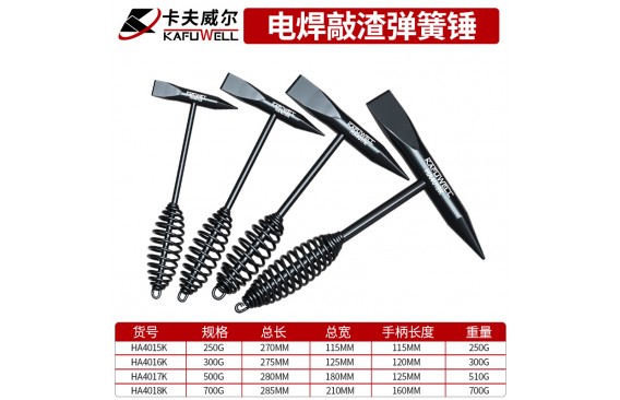 卡夫威尔电焊工专用敲渣弹簧锤系列HA4015K、HA4018K 高碳钢锻造 坚固耐用安全性高弹簧柄铐锈锤 电焊用 敲砖用 汽车维修 碎冰用多功能一体铐锈锤