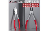 双色浸塑柄水口钳(薄款):6"薄型,55#碳钢,钳体硬度38-46HRC,钳口硬度52-60HRC,灰红沾塑双色手柄,灰色为光柄,红色为毛面。