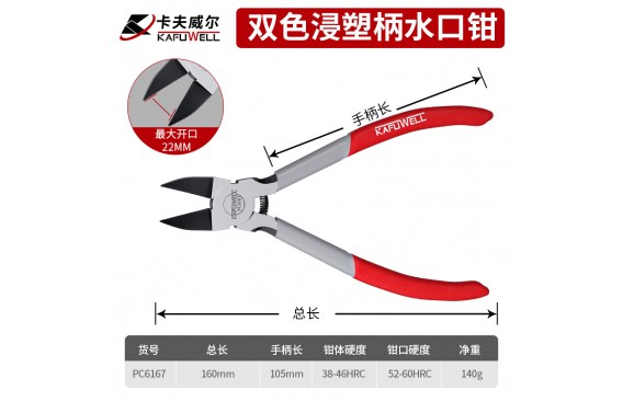 卡夫威尔双色浸塑柄水口钳PC6167 锋利耐用 剪切平整 省力弹簧,磨砂手柄,一钳多用,剪切锋利,高硬度韧性好用水口钳