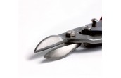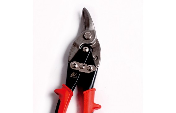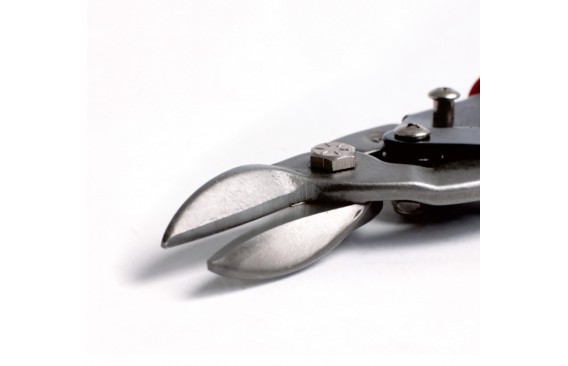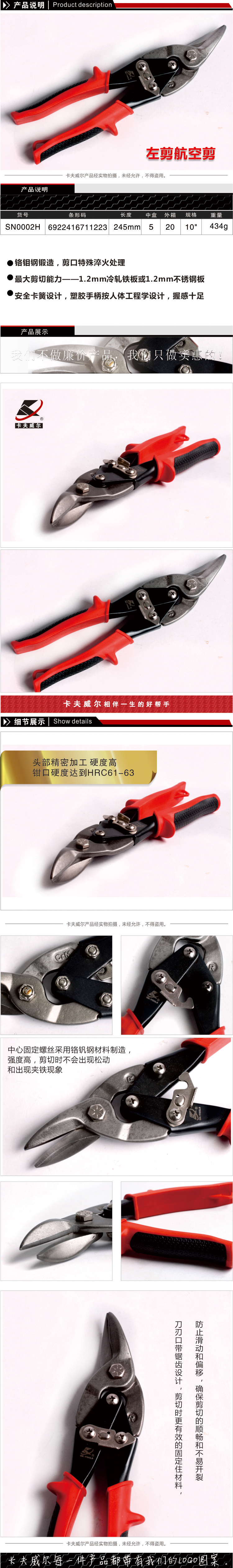 *铬钼钢锻造,剪口特殊淬火处理。最大剪切能力1.2mm冷轧铁板或1.2mm不锈钢板。安全卡簧设计,大型塑料手柄,握感舒适
