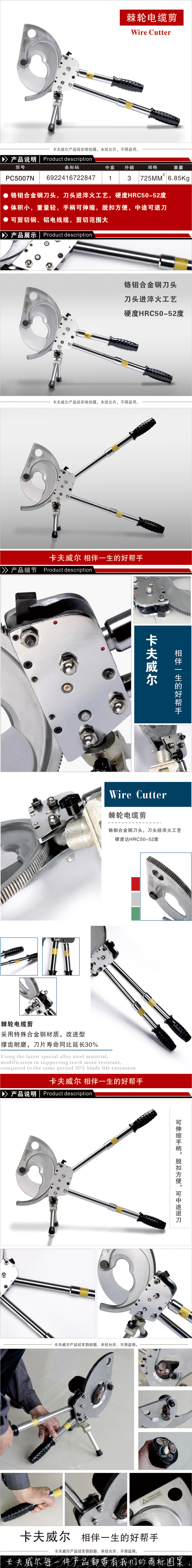 铬钼合金钢刀头,刀头淬火,剪切性能更强,棘轮装置,使用更省力没使用铜、铝电缆线