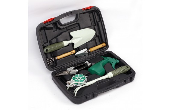 1件橡塑柄三爪27*8.8cm1件橡塑柄小铲30.5*9.1cm1件水壶180ml1卷尼龙线30m1件木柄小铲7“1件木柄三爪6.5”1件锌合金柄园林剪8“