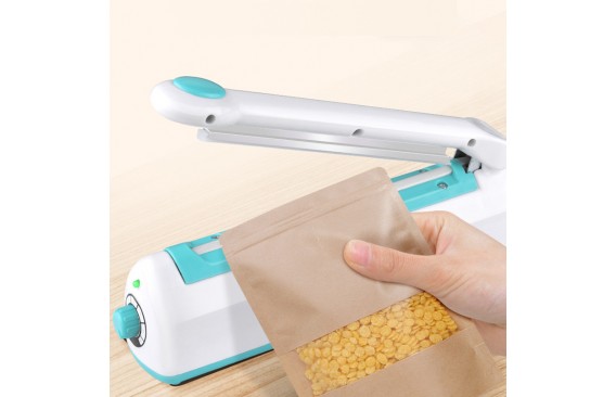 手压工封口机 白蓝双色,电压220V/50-60HZ,功率300W,产品8档温度按钮选择,最大封口长度200MM,封口宽度2MM