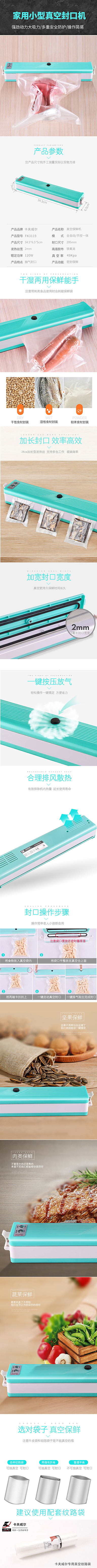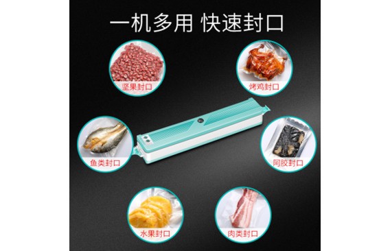 家用小型真空机 白蓝双色,电压220V/50-60HZ,功率128W,真空度过49KPA,最大封口长度28MM,封口宽度2MM
