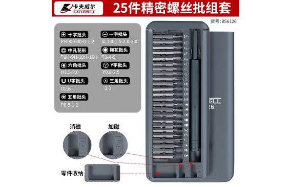卡夫威尔25件套精密螺丝批 BS6125、BS6126精密螺丝批组套系列 高品质多规格可选,用于维修手机,电脑,手表,眼镜等方便快捷